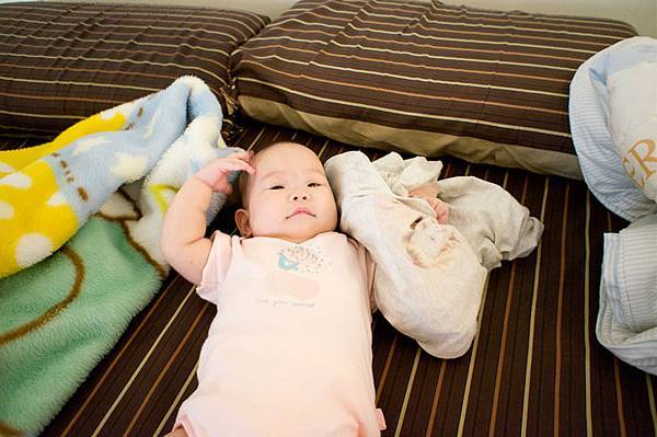 (睡覺中的菲菲以為媽媽在旁邊,抱著衣服找奶喝....XD)