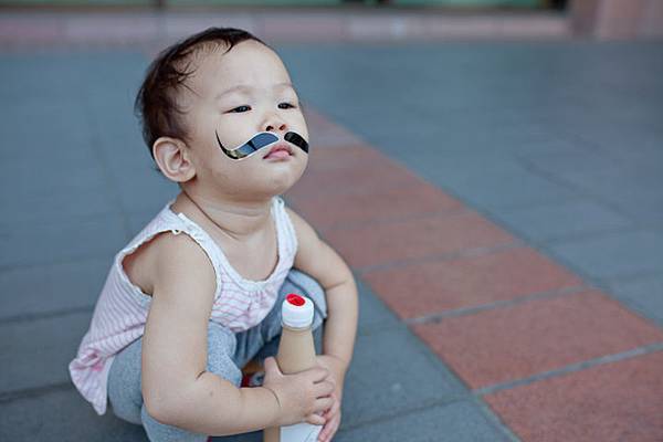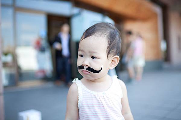 哈,這鬍子是看達利展購票送的~貼在菲菲臉上真的是好逗趣~