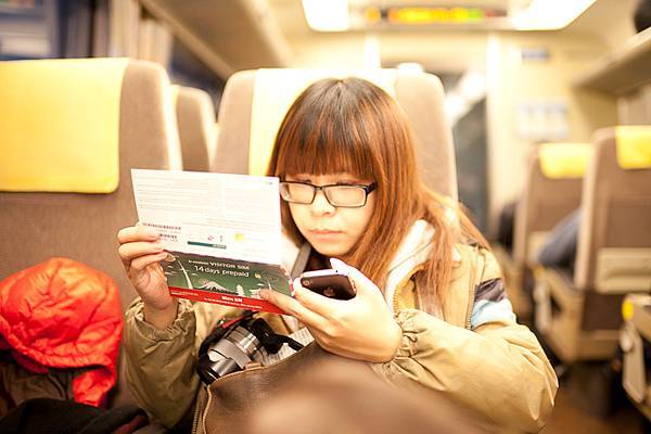 你知道嗎?列車上的椅子可以自由轉向,所以我們可以面對面坐著唷~