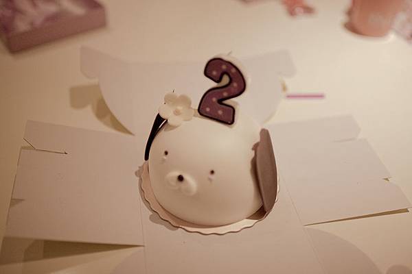 2歲的蠟燭是在沖繩買的~XD,蛋糕沒有小兔子造型,只好買了小狗的,不過她還是很開心唷~