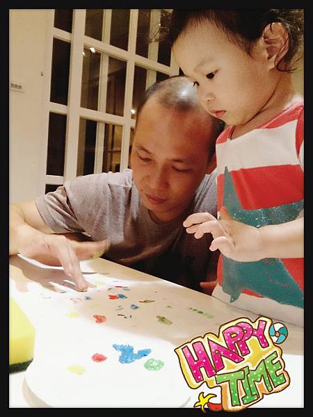 看我跟拔拔一起完成我們的第一幅手指畫吧~