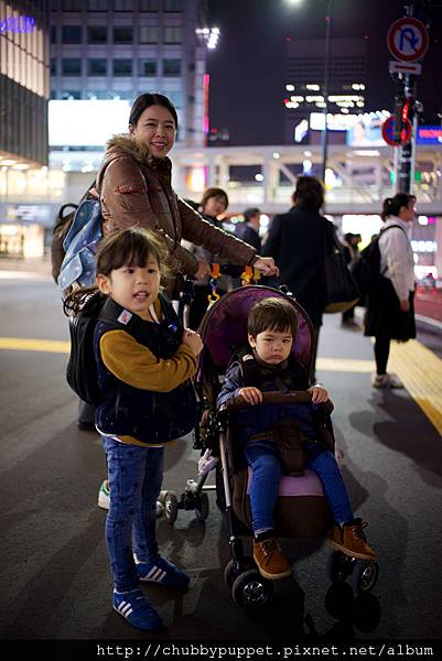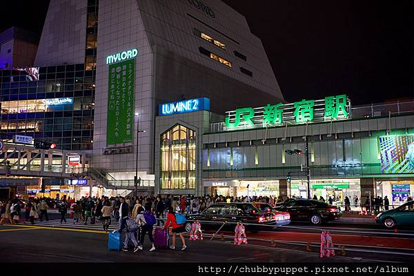 這班的成田特快人似乎不太多,大概是也晚了吧,要搭將近80分鐘才會抵達新宿,所以等我們終於抵達新宿時,已經是晚上的10點07分了,一整個想哭,拖著疲累的身體和肚子,還有兩個開心的孩子在偌大的新宿站裡徘徊,找尋京王新線的位置準備轉車到初台站。看這照片就知道新宿站有多大了,都10點了還車水馬龍的。